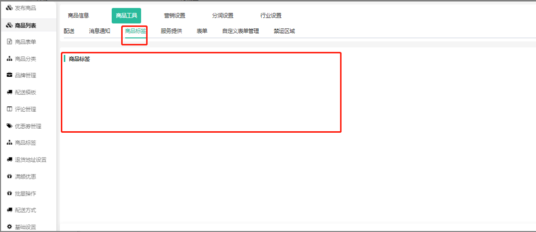 注意:商品标签在商品编辑显示,需要满足两则条件——1.该标签组开启了显示,2.该标签组有子标签。否则不会显示。如下图